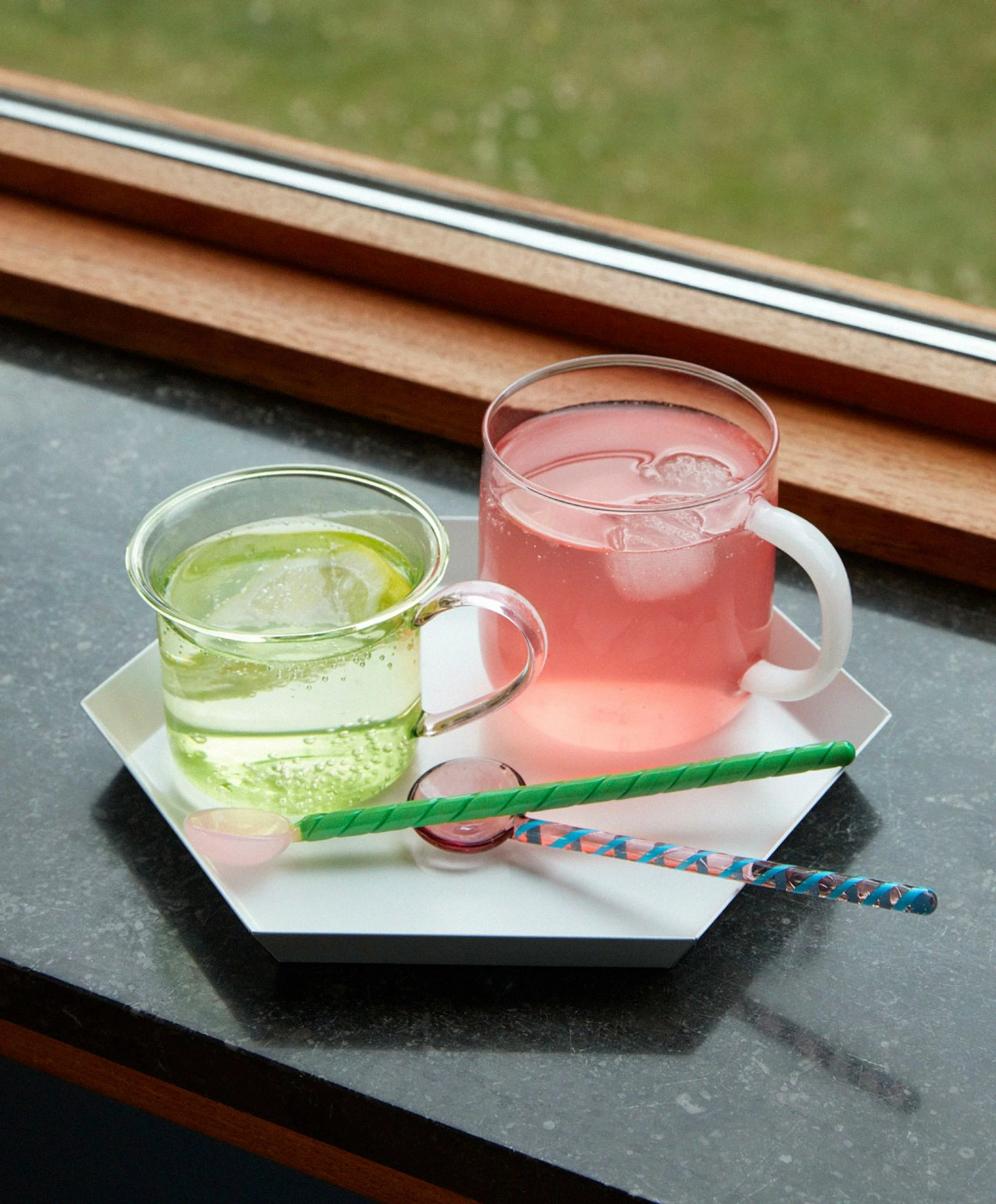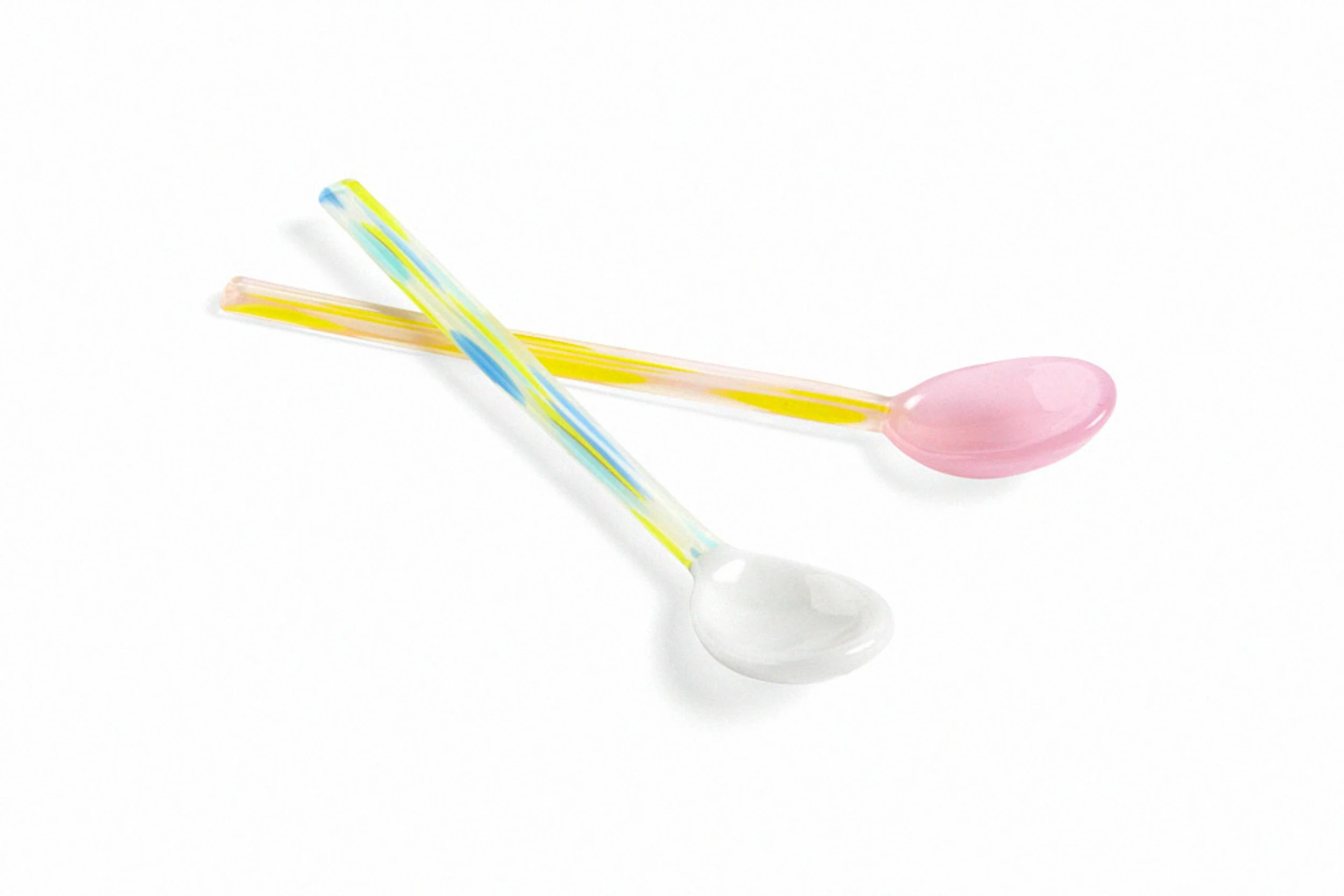 Unique glass spoons made in different colors and patterns that give a playful and fresh look to the table. Use them for coffee, tea, salt or spices.