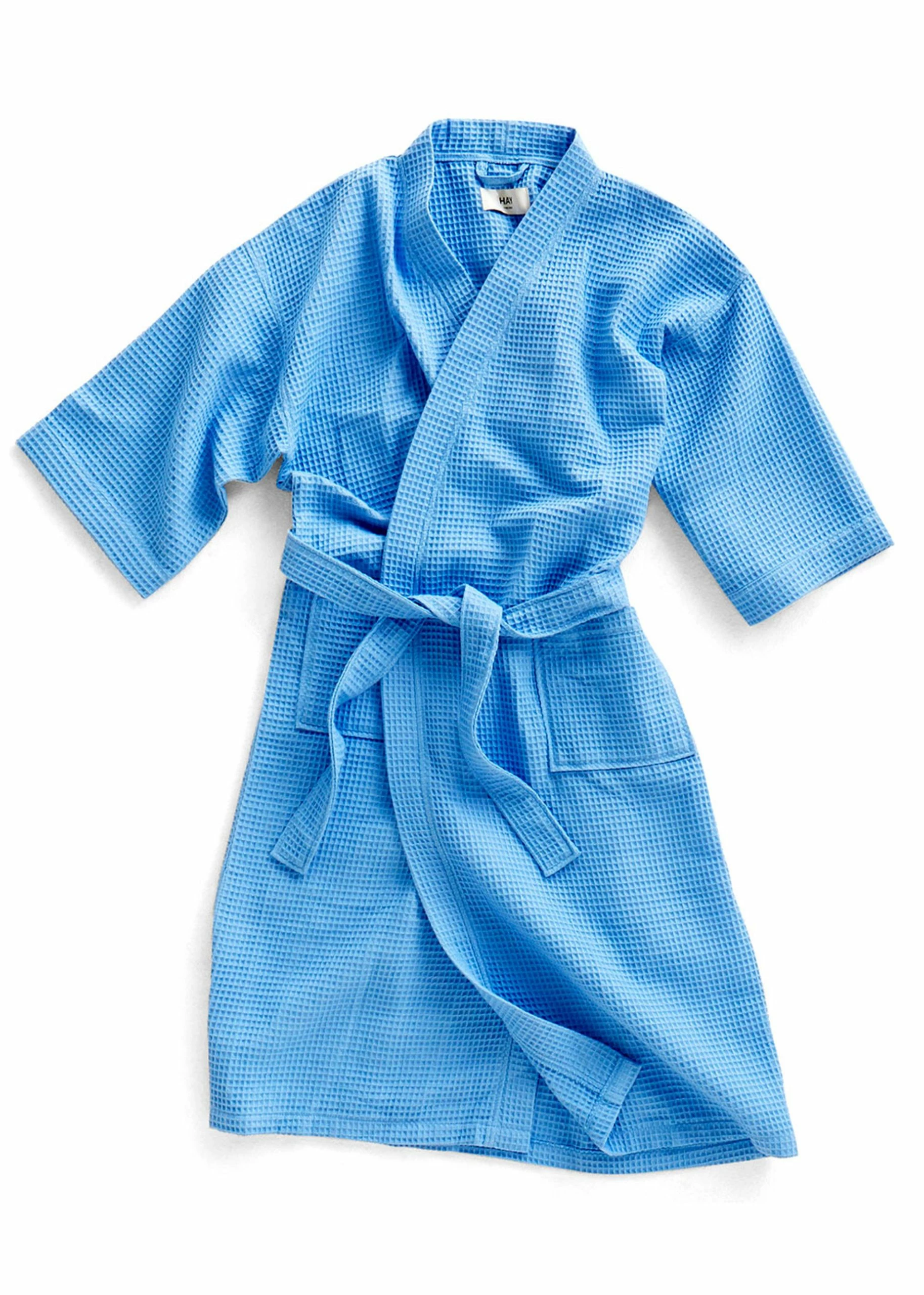 Beautiful bathrobe from HAY in a casual unisex cut with pockets and belt in life. The wafer texture of the bathrobe is both absorbent and extremely comfortable and is available in three fine delicate pastel colors.