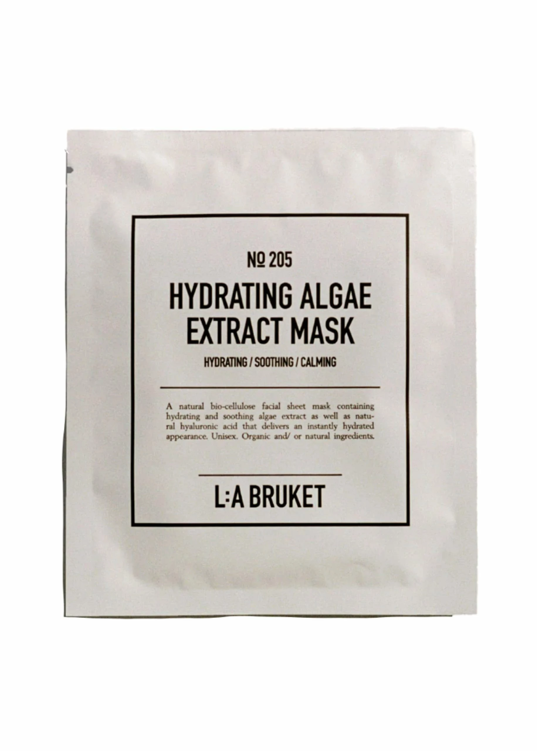 Hydrating Algae Mask by L:A Bruket is a moisturizing 100% natural biodegradable biocellulose sheet mask, soaked in 24 ml serum. The face mask is made of ultra fine fibers of cellulose, produced by microorganisms during the fermentation of coconut juice. Contains algae extract, rich in minerals and detoxifies the skin. Various xylitols and hyaluronic acid instantly hydrate the skin, while silica helps maintain moisture throughout the day. Perfect for dry and dull skin.