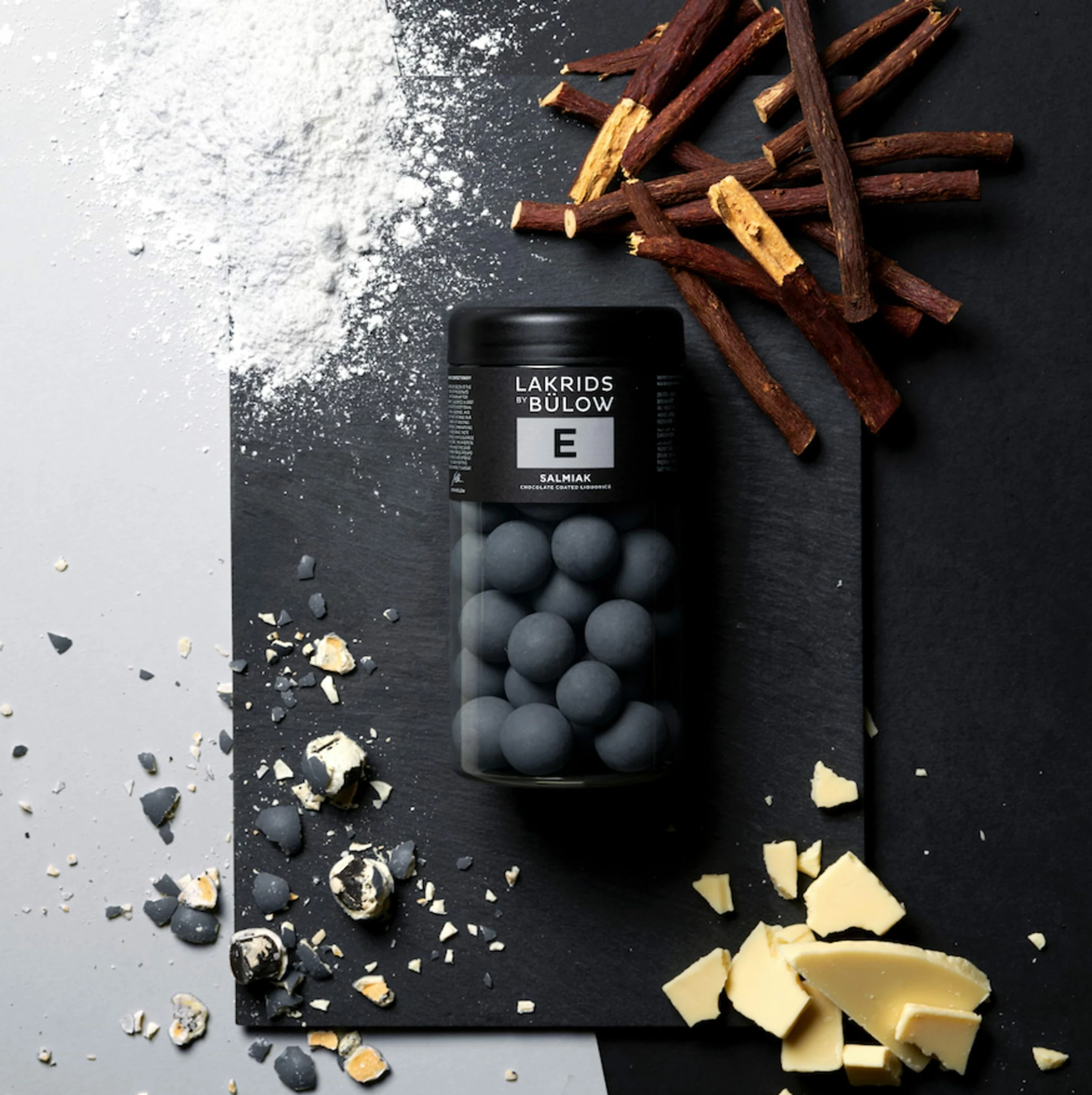 A combination of white chocolate and a salty liquorice kernel. As the creamy white chocolate melts on your tongue, tiny flavour explosions of liquorice powder are revealed, completing a perfectly balanced salty-sweet experience.