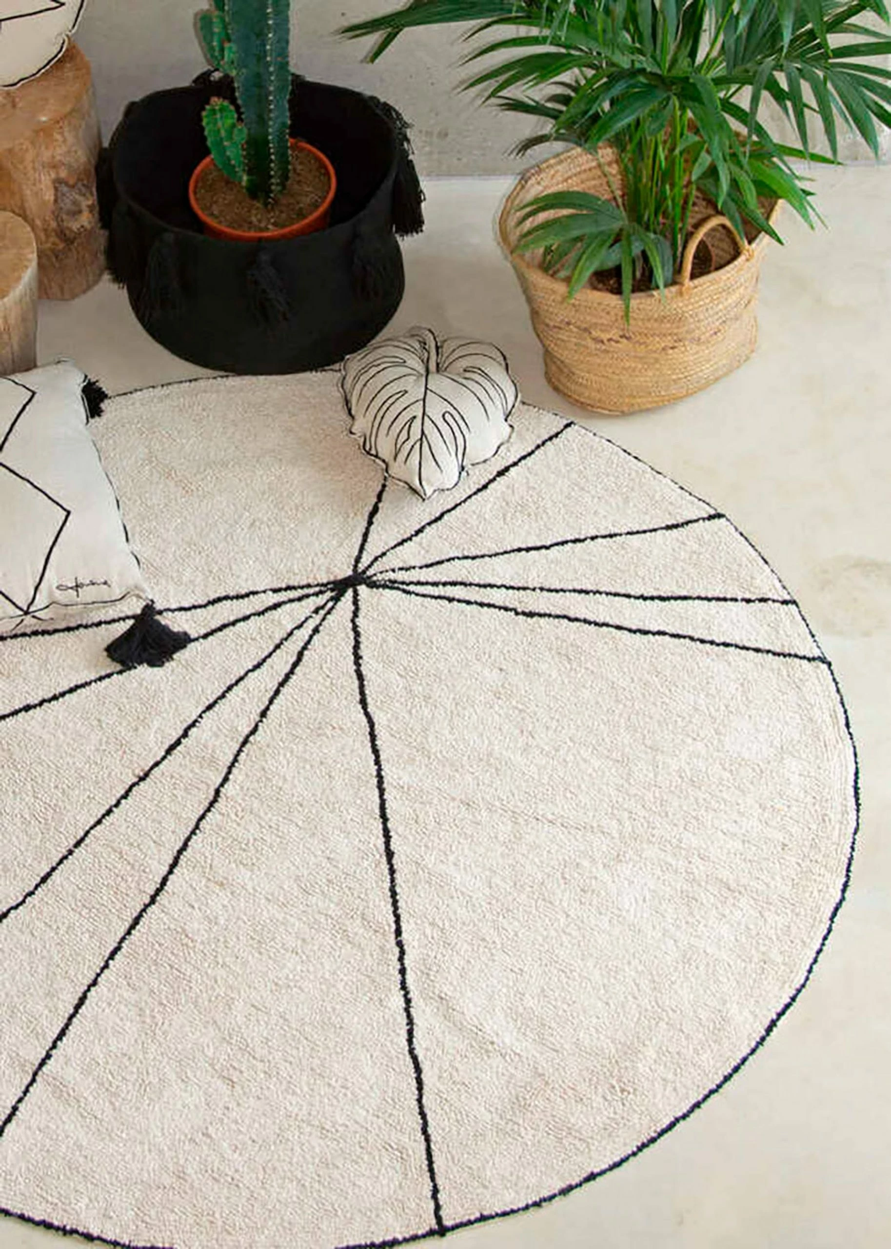 Washable Rug Trace from Lorena Canals is a beautiful geometric rug. The rug is both stylish and functional. With its Scandinavian design, it will fit perfectly into a minimalist interior. The round shape and soft materials make it ideal for a teenage room or to soften up a more colorful children's room.
