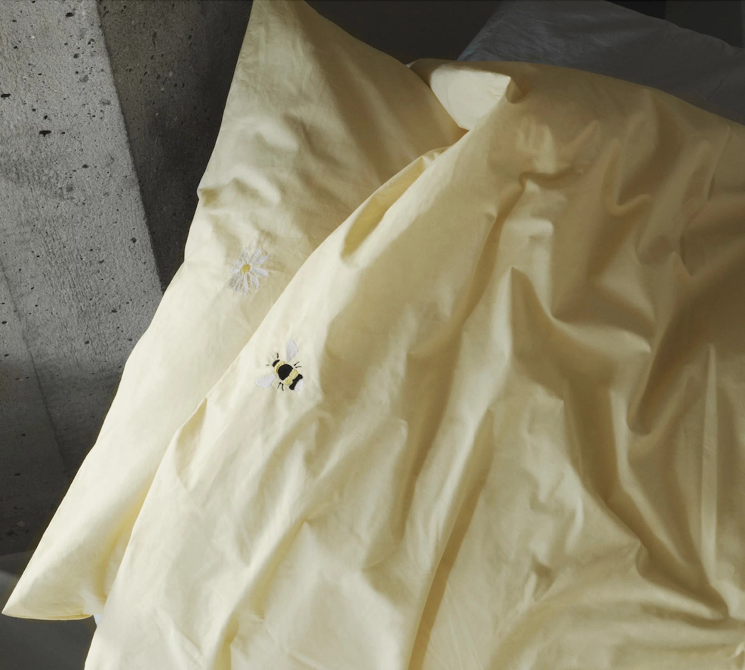 Snooze is a bed sheet from Normann Copenhagen. The bed sheet consists of a pillowcase with envelope closure and a duvet cover with a hidden zipper at the bottom. The bed linen is made of 100% OEKO-TEX cotton. The bed sheet is available in four different sizes and five different colors. Each variant comes with unique embroidery on the front and a matching bag with drawstring.